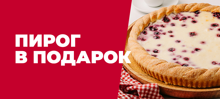 Акция действует при покупке от 4 любых больших пирогов из меню - Шаньга со смородиной и творогом в ПОДАРОК!